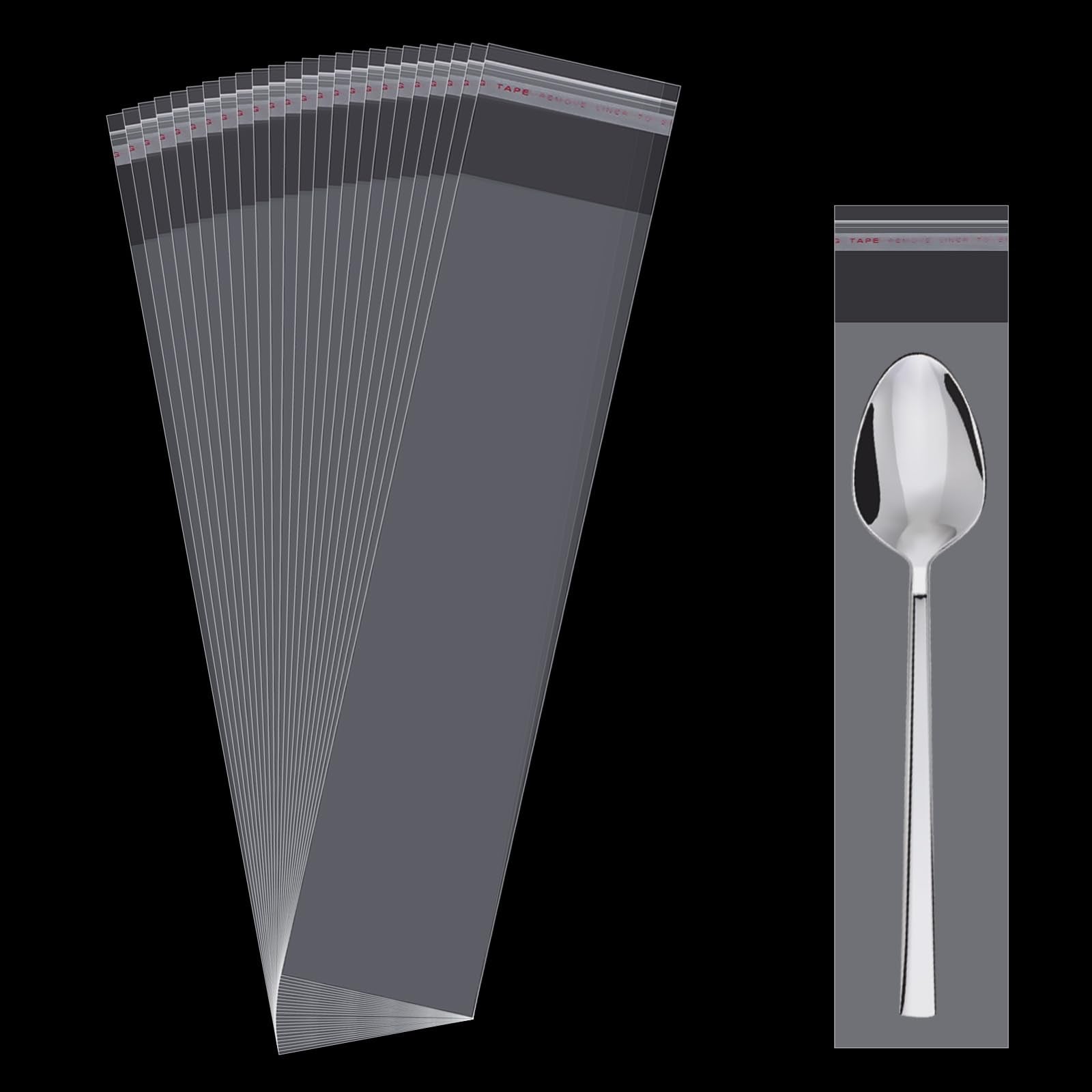 Ymapinc Pack of 200 Cellophane Bags, 21 x 5 cm Self-Adhesive Plastic Bags, Cellophane Bags, Self-Adhesive Long Cellophane Bags, Transparent Cellophane Bags for Chocolate, Lollipops, Jewellery, Spoons