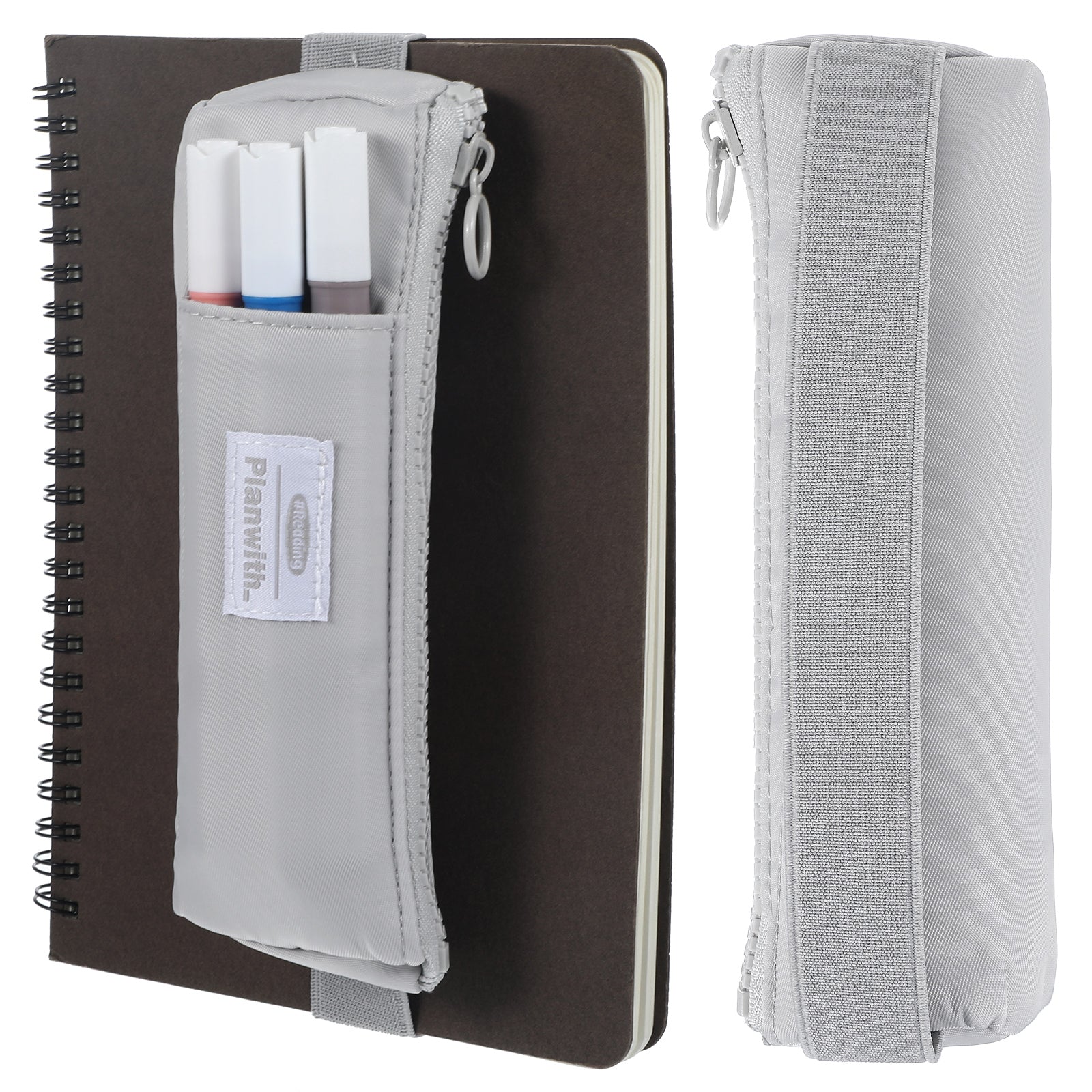 Ymapinc Pencil Holder Pouch, Small Pen Holder with Zipper for Notebook Journal Case Book Pen Holder for Travel Hardcover Book Accessory Slim Grey Pencil Case for Planners