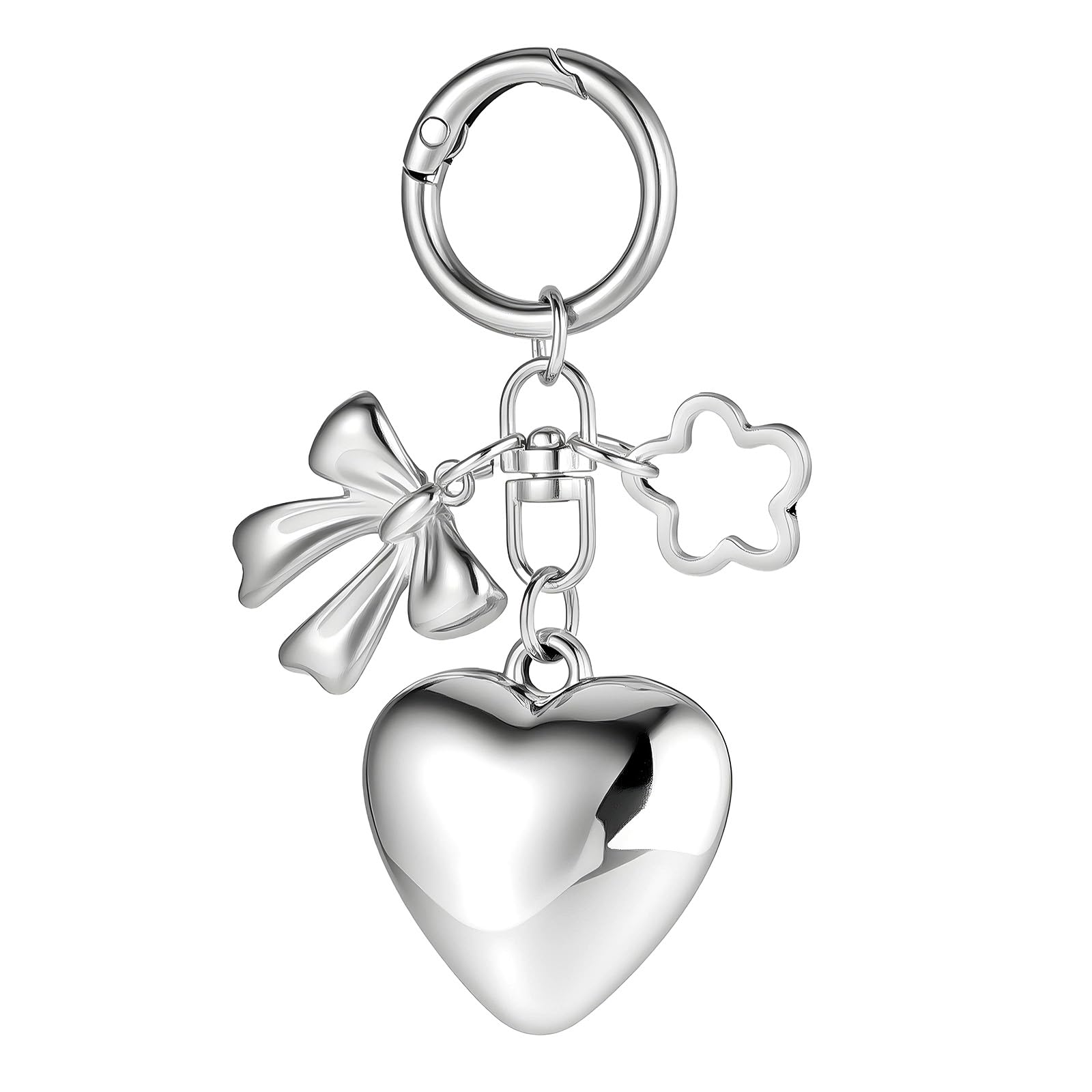 Ymapinc Silver Bag Charms for Women - Metal Heart Shaped Bowknot Love Pendant Kawaii Keychain for Purse Handbag Bags Phone Case