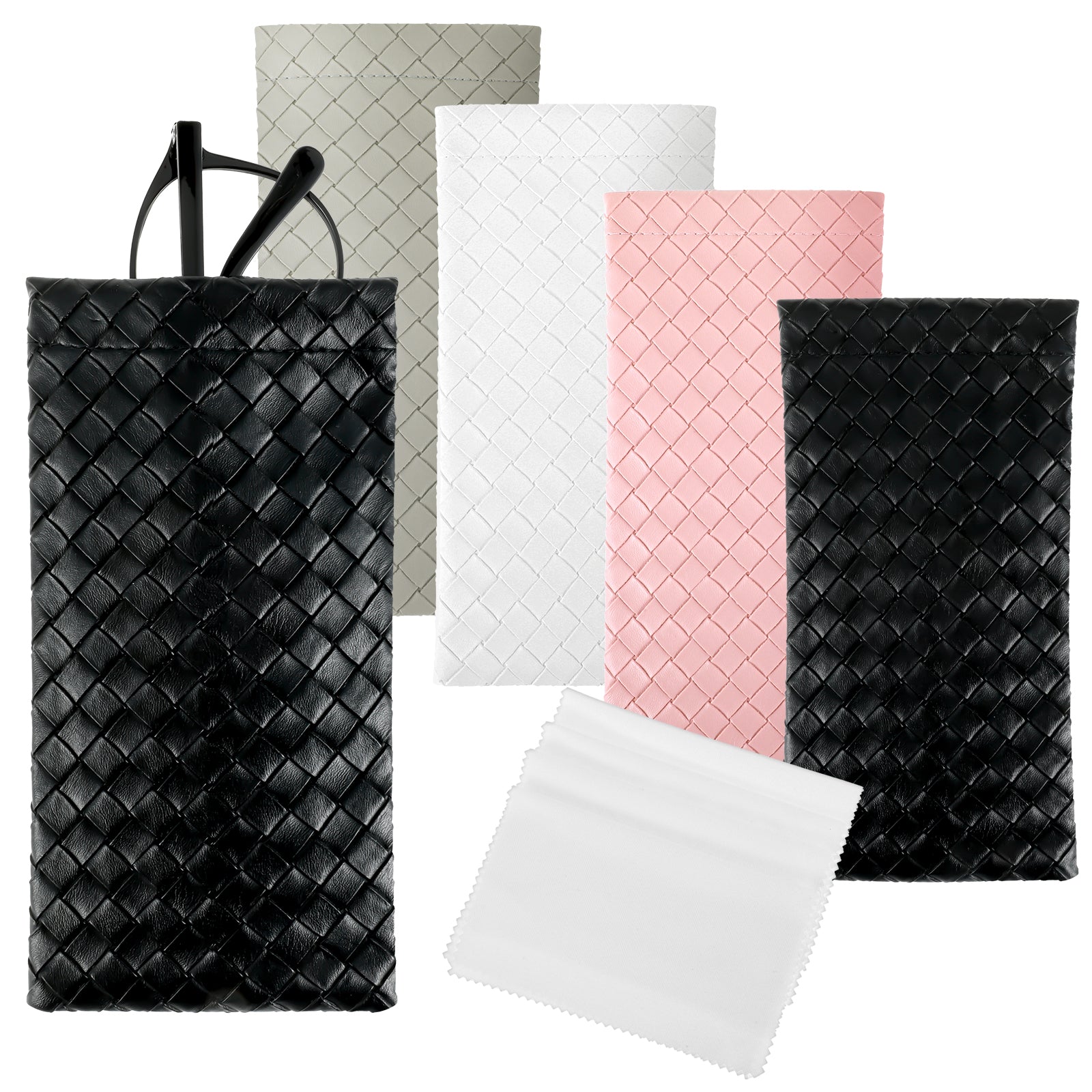 Ymapinc Soft Glasses Case for Women - 4PCS Leather Glasses Pouch, Portable Squeeze Top Sunglasses Case Soft Pouch with Cleaning Cloth for Women Men Girls (Pink, Black, White, Gray)