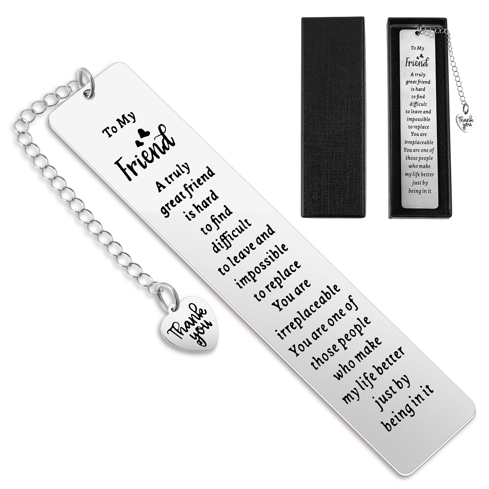Ymapinc Thank You Metal Bookmark for Women, Aesthetic Friendship bookmarklet with Black Box, Gifts for Book Lovers Mom BFF Best Friend, Christmas Birthday Graduation (Stainless Steel)