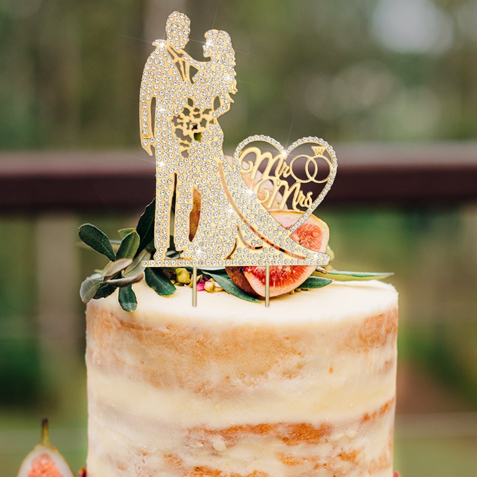 Ymapinc Wedding Cake Toppers Bride and Groom, Rhinestone Metal Mr and Mrs Cake Topper, Elegant Gold Wedding Cake Topper for Bridal Shower, Anniversary, Engagement Party Decorations Supplies